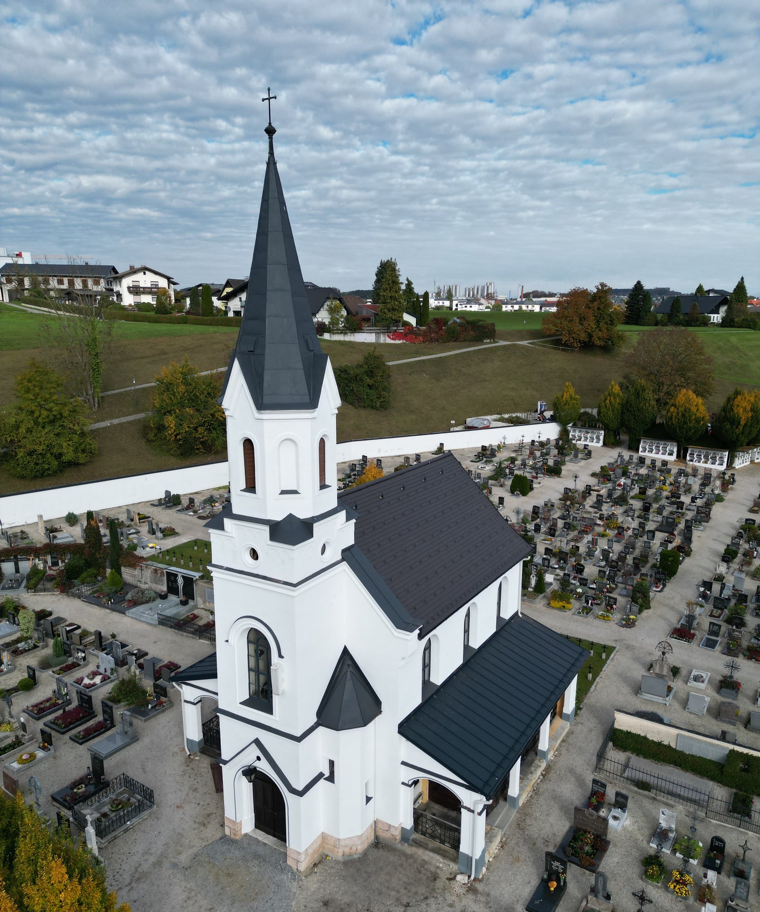 Bei diesem besonderen Projekt durften wir die Fassade der Friedhofskirche in neuem Glanz erstrahlen lassen. Mit viel Sorgfalt und Liebe zum Detail haben wir die Außenflächen erneuert und der Kirche ihr strahlendes, frisches Weiß zurückgegeben. Die harmonische Kombination mit den dunklen Akzenten sorgt für einen eleganten und zeitlosen Look.